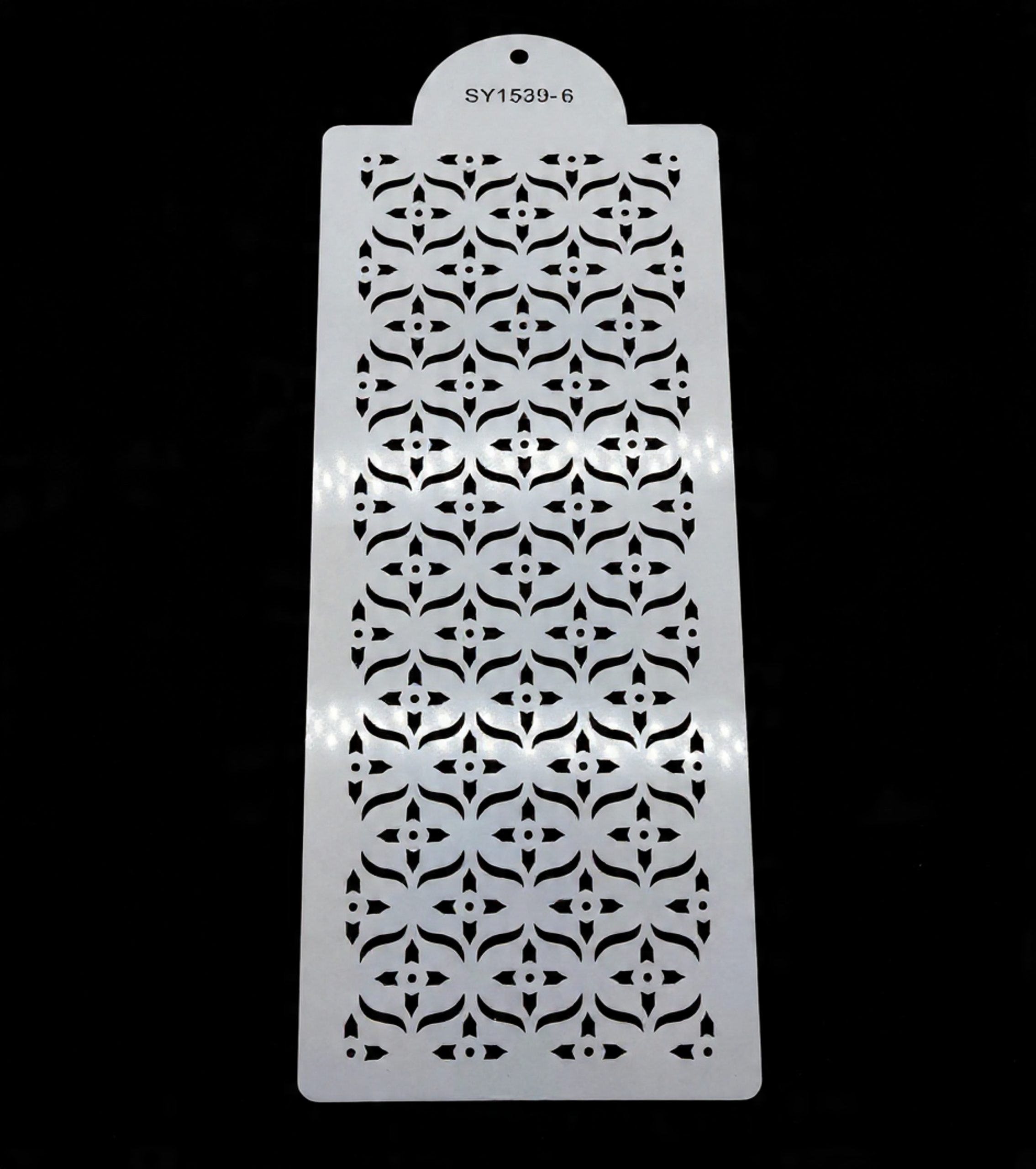 Cake stencils with assorted patterns, perfect for decorating cakes with icing, cocoa, or powdered sugar. Easy to use and clean.