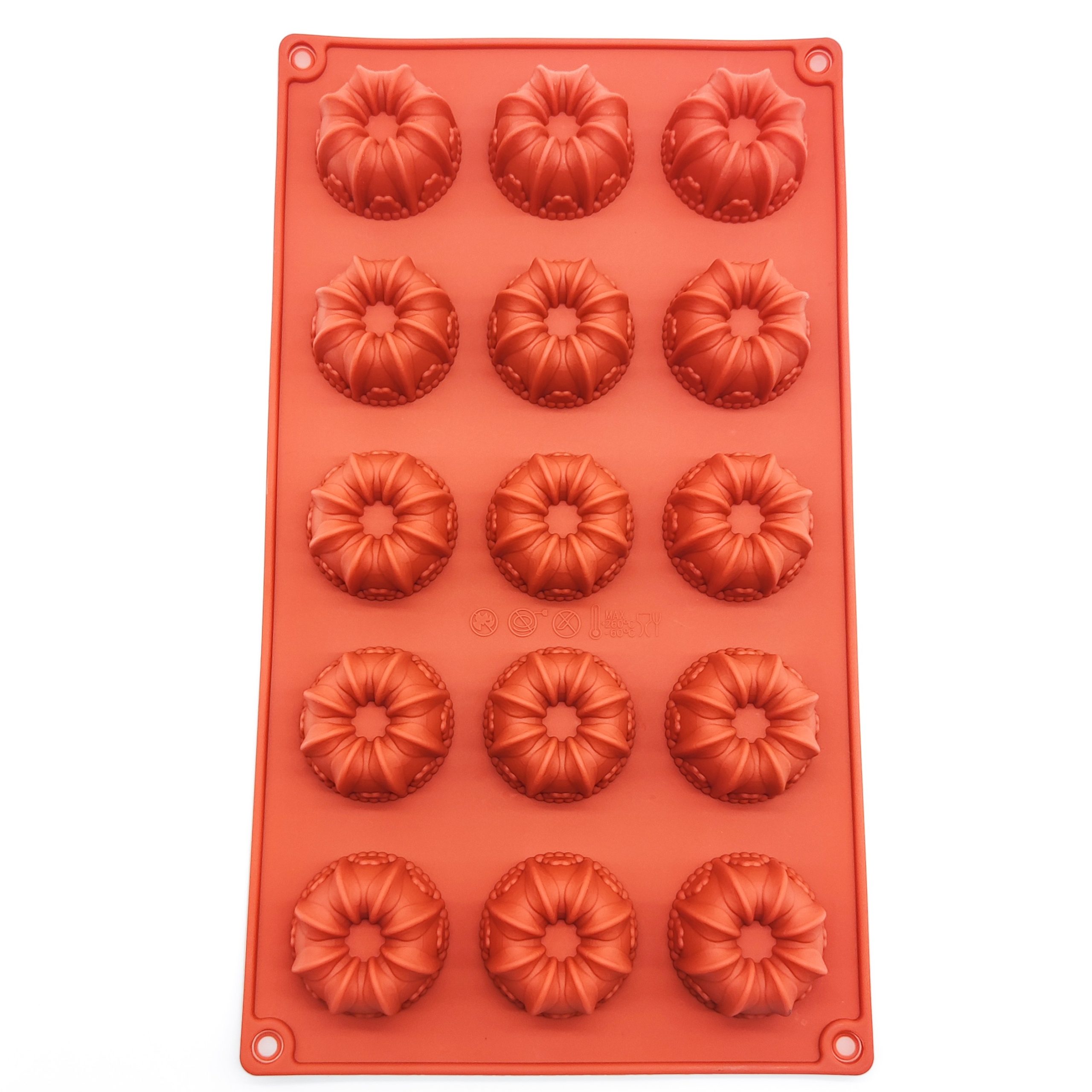 Durable non-stick silicone mould featuring 15 elegant crown-shaped cavities. Perfect for baking mini bundt cakes, chocolates, jellies, or desserts. Flexible, heat-resistant, and easy to clean.