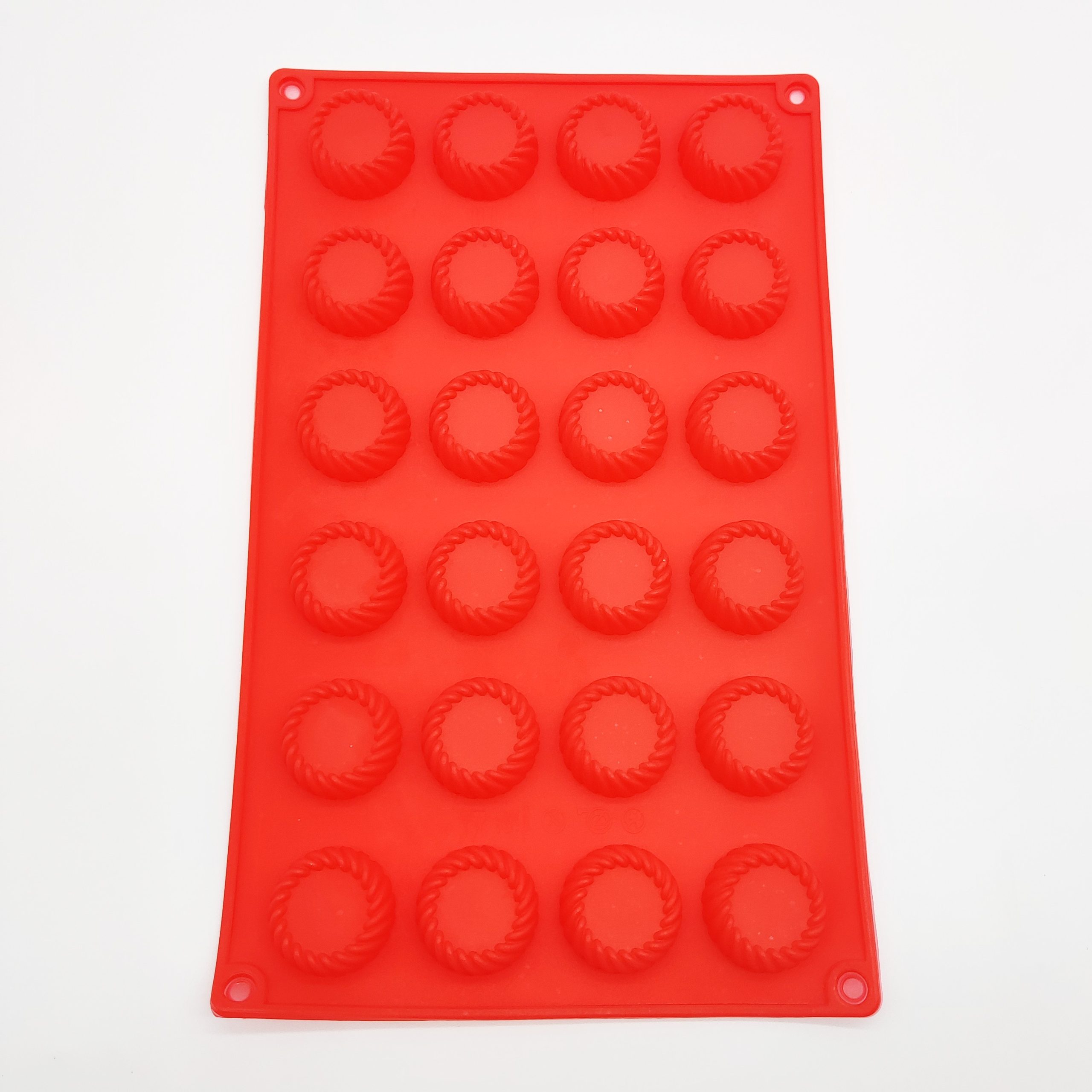 Durable non-stick silicone mould with 24 fancy round cavities. Perfect for making chocolates, burfee, candies, gummies, soaps, or resin crafts. Flexible, heat-resistant, and easy to clean.