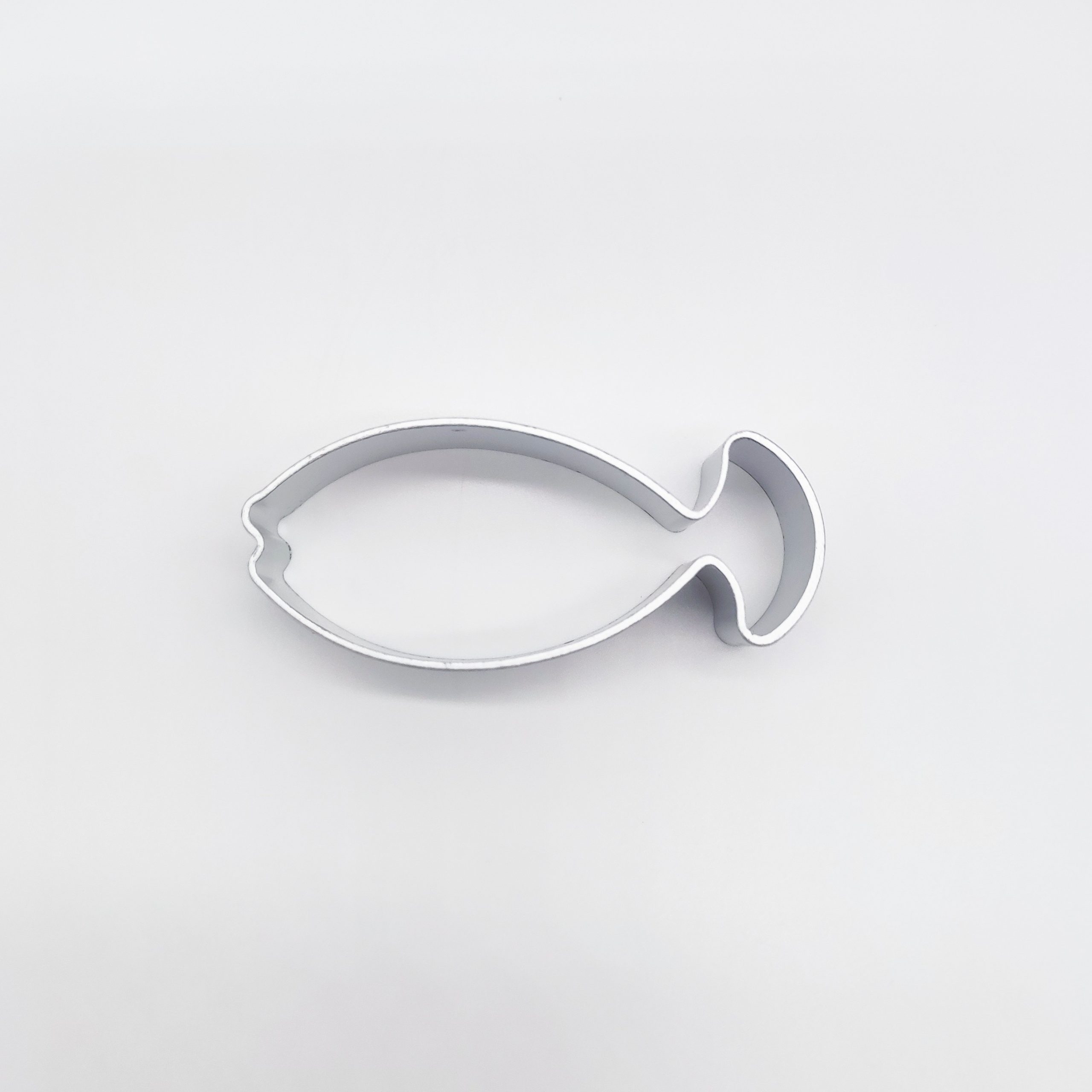 Durable metal cutter in a fish shape. Perfect for cookies, fondant, or pastries. Easy to use and clean.