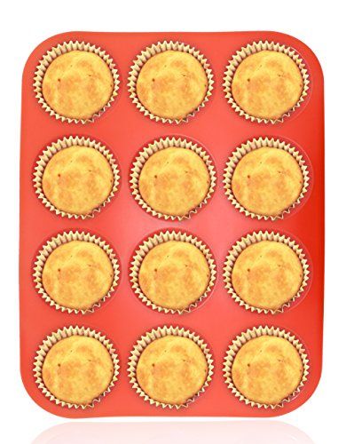 Premium non-stick silicone pan with 12 cups, perfect for baking muffins, cupcakes, brownies, or mini quiches. Flexible, heat-resistant, and easy to clean for effortless baking.