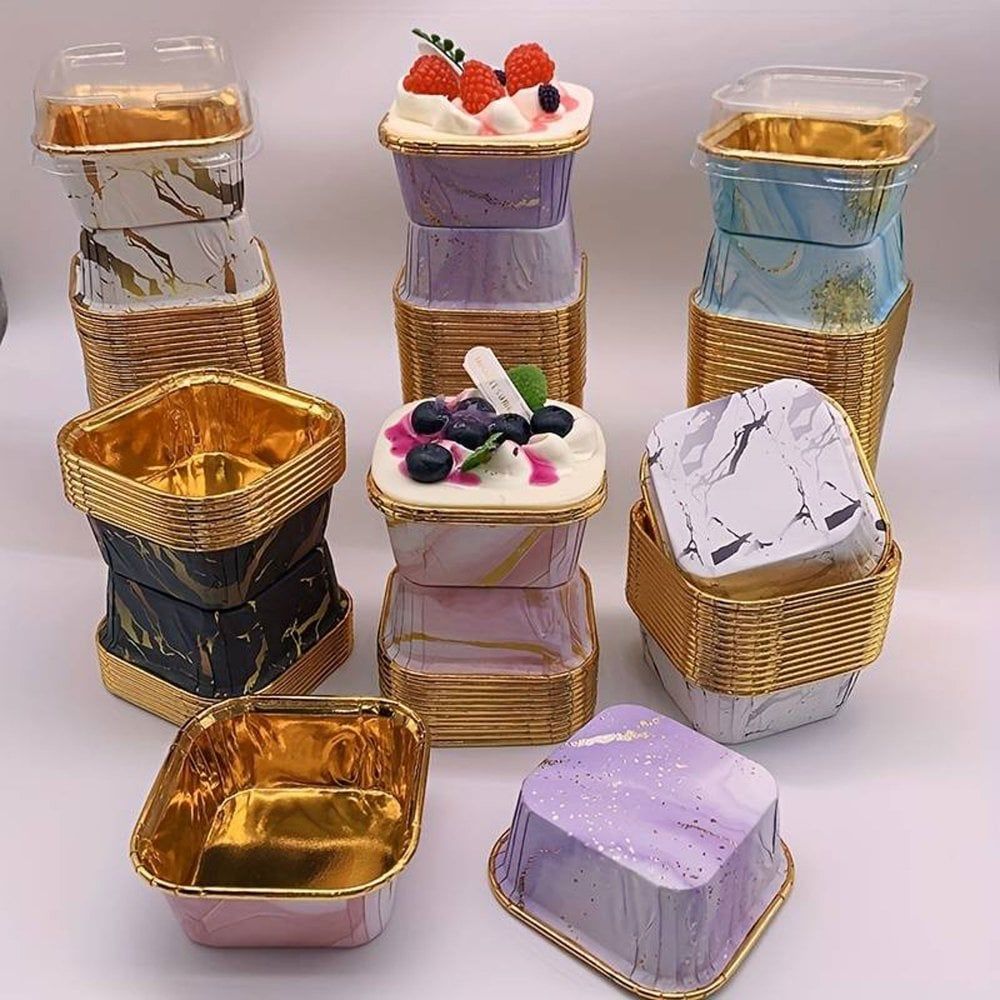 Square Foil-Lined Baking Cups With Lids (8x3cm)